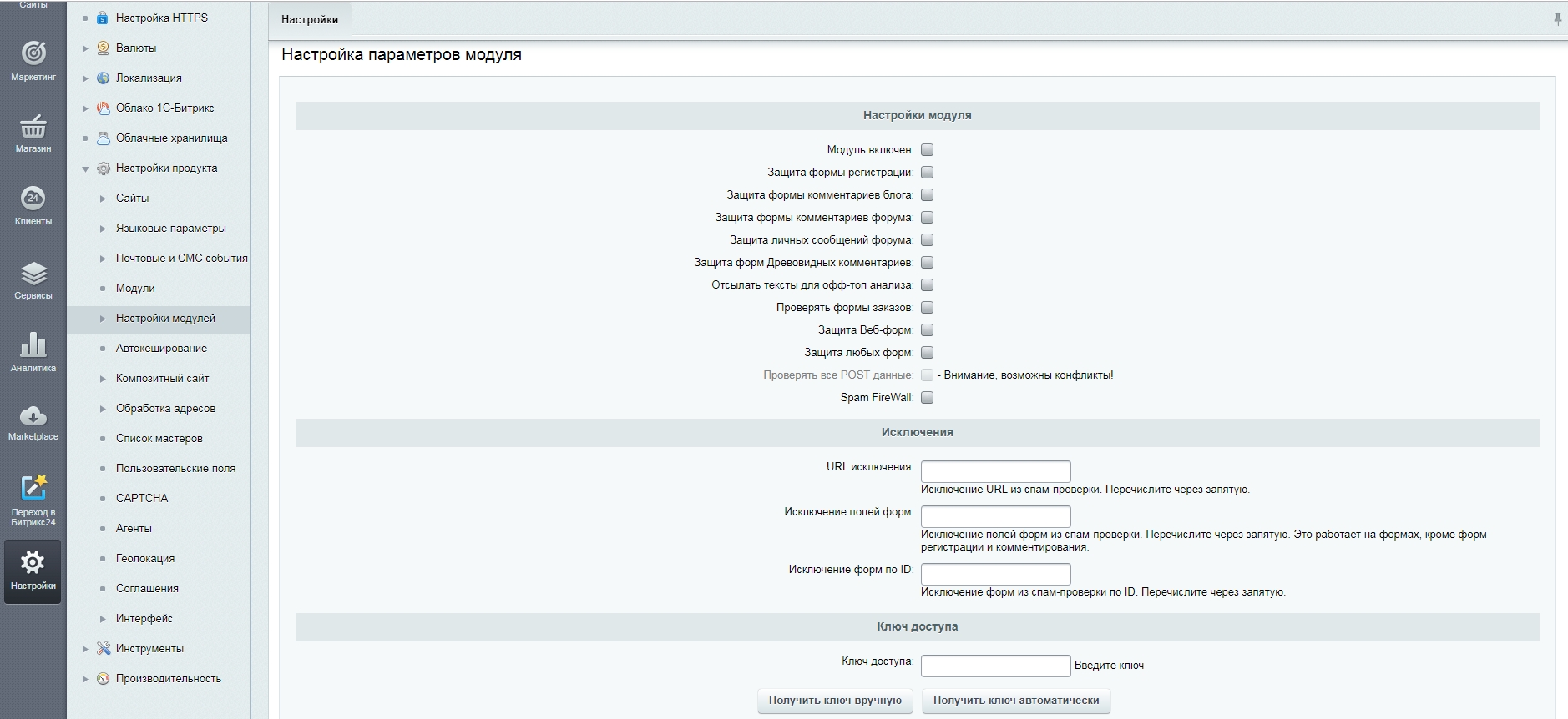 Модуль использует серию проверок для фильтрации регистраций спам-ботов на сайте.